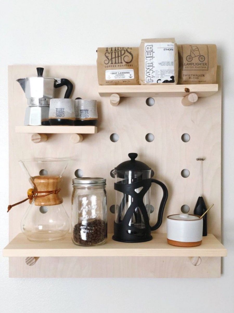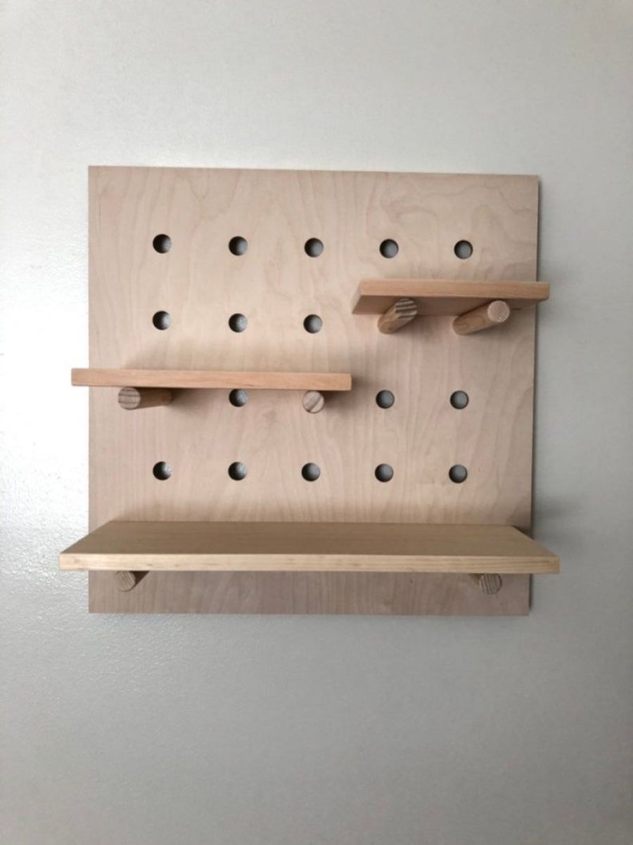 Modern Wood Pegboard Shelf