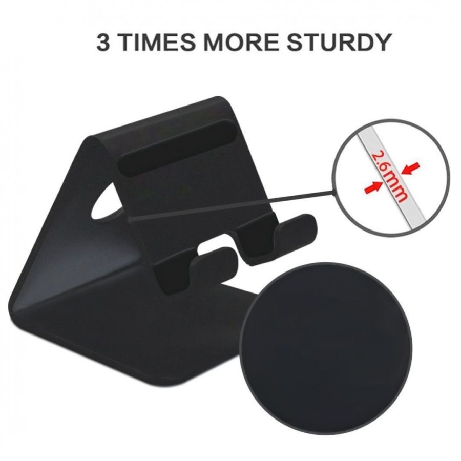 ELV Desktop Cell Phone Stand Tablet Stand, Aluminum Stand Holder for Mobile Phone (All Size) and Tablet (Up to 10.1 inch) - Black