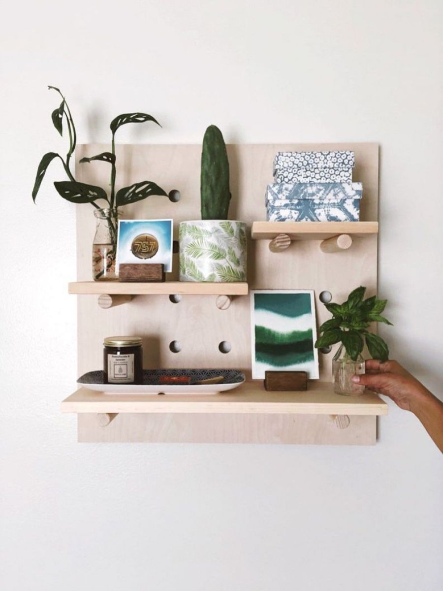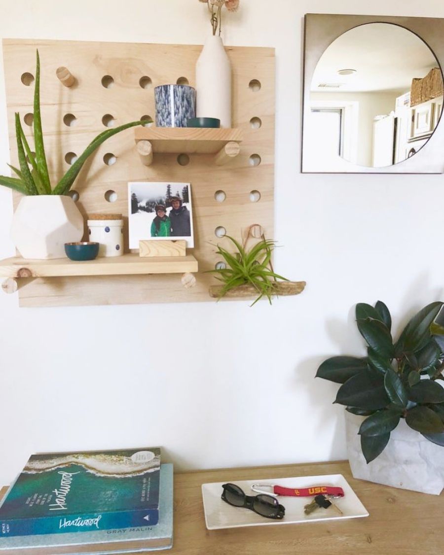 Modern Wood Pegboard Shelf